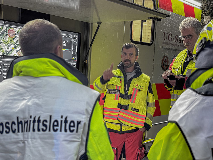 Bei größeren und komplexeren Schadenslagen kommt die Sanitätseinsatzleitung in den Einsatz. In der Sanitätseinsatzleitung koordinieren unsere ehrenamtlichen Organisatorischen Leiter (OrgL) diese Einsätze.